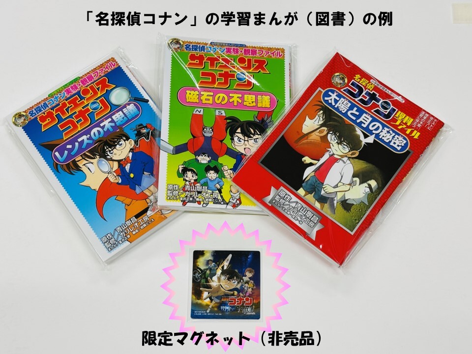 当館のサイエンスミュージアムショップにて「名探偵コナン」の学習まんがシリーズ(図書)を含む1,500円(税込)以上ご購入の方、先着2,500名様に限定マグネット(非売品)をプレゼントします。