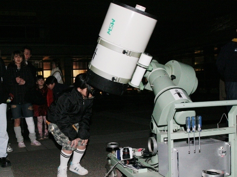 夜空に輝く星や天体の見つけ方をプラネタリウムで紹介してから、屋外で望遠鏡を使った天体観望会を開催します。
