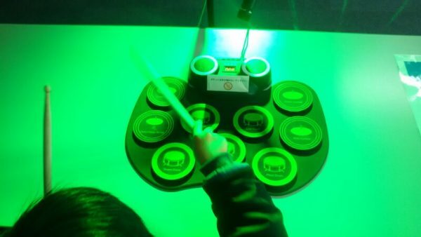 演奏した音によって、ステージの光の色や模様が変わるよ!