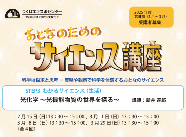 科学技術に関心のある大人の方※ 原則、全4回の講座の受講が可能な方。